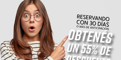 Reserva tu alojamiento 30 días antes o más y accede a un 55% de descuento o más!